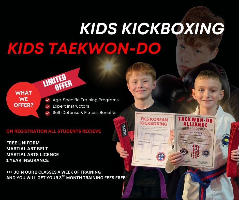 Our Korean Kid's Kickboxing program is designed to help children develop discipline, hand-eye coordination, confidence, fitness levels, strength and much more.